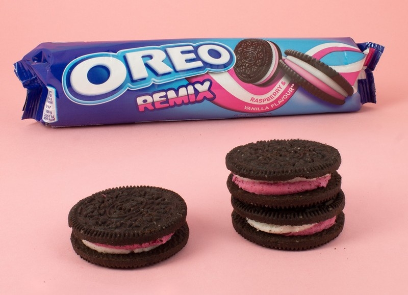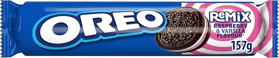 Si tienes un sofisticado paladar, prueba las galletas Oreo Remix, rellenas con dos capas de crema sabor frambuesa y vainilla. Combinan dos crujientes galletas de chocolate con un delicioso relleno de mix de sabores. Elaboradas con auténtico cacao, las galletas Oreo Remix ofrecen un sabor original que despierta el espíritu divertido de quien las disfruta