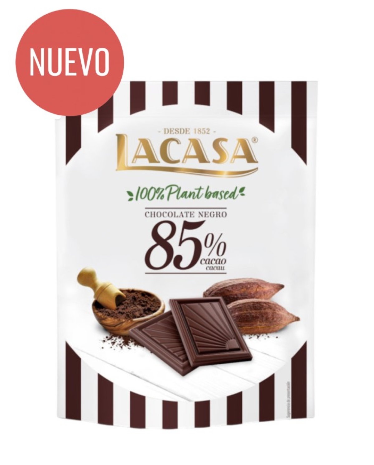 INGREDIENTES Pasta de cacao, cacao desgrasado en polvo, azúcar, manteca de cacao, emulgente (lecitina de girasol) y aroma natural de vainilla.